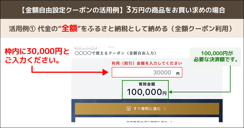 例)利用金額 30,000円→寄附金額 100,000円